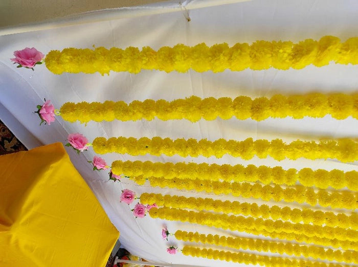 - 7-meter golden thread for hanging marigold garland.
