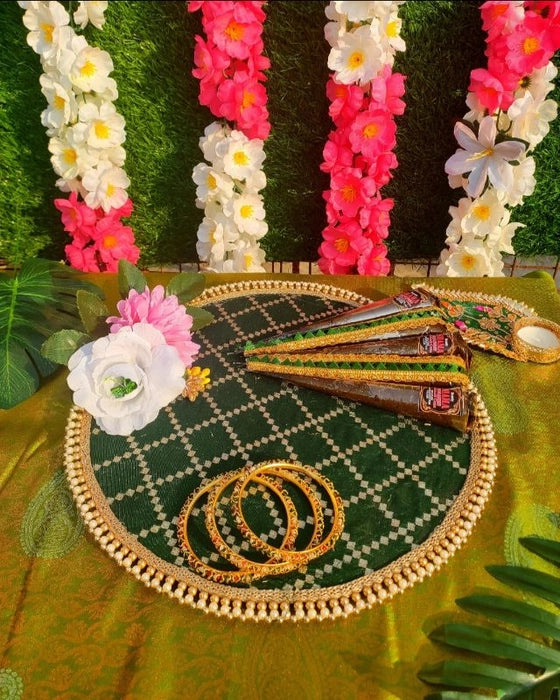 This decorative plate has been prepared in such a way that it can be used in your 2 ceremonies Haldi and Mehndi.