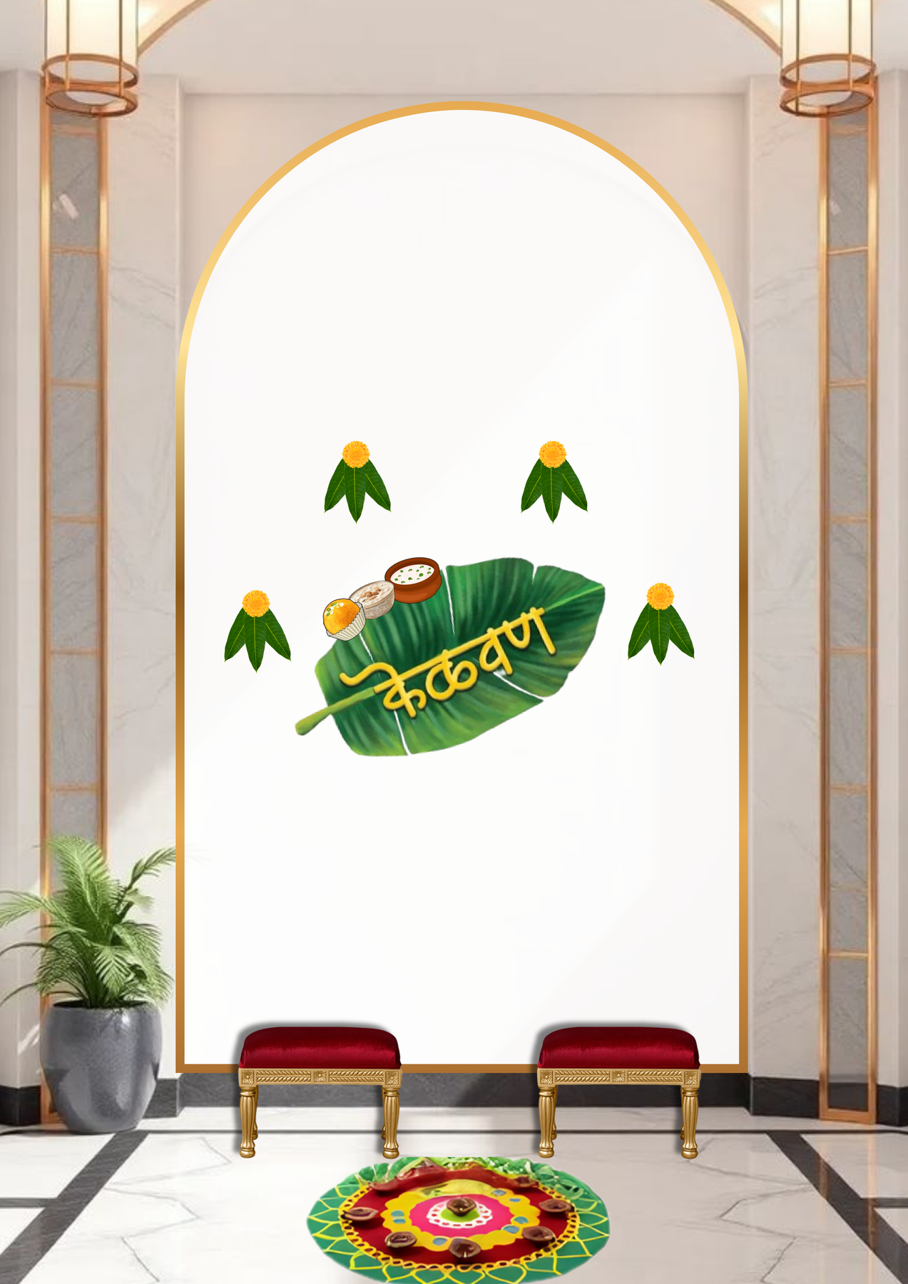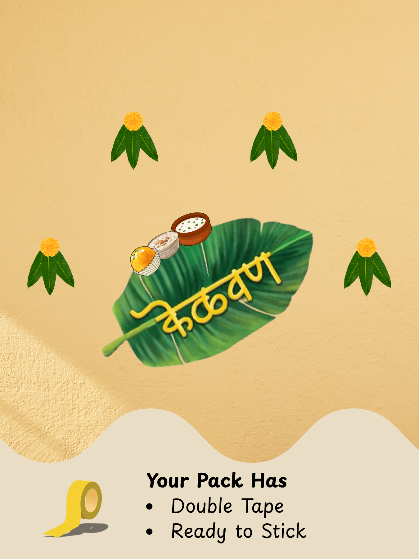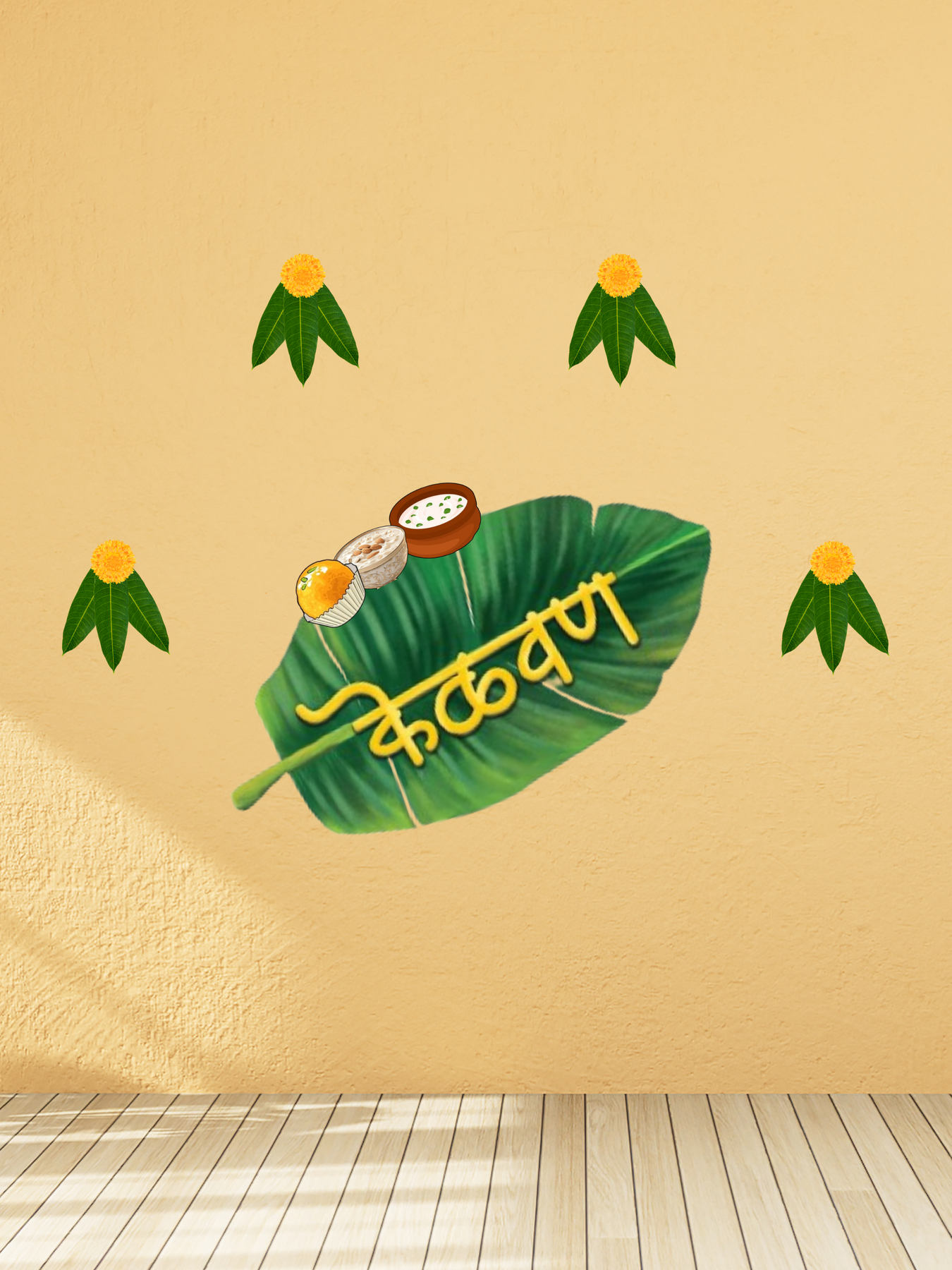 A fresh, earthy, and traditional design inspired by authentic Maharashtrian décor. This Minimal Marigold & Leaf Kelvan Decor Kit beautifully blends natural elements with cultural aesthetics.