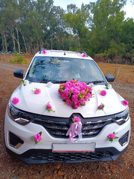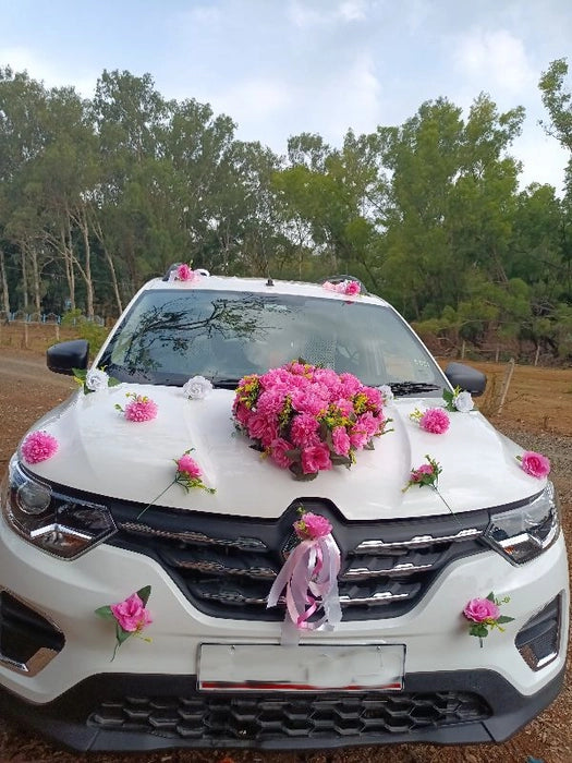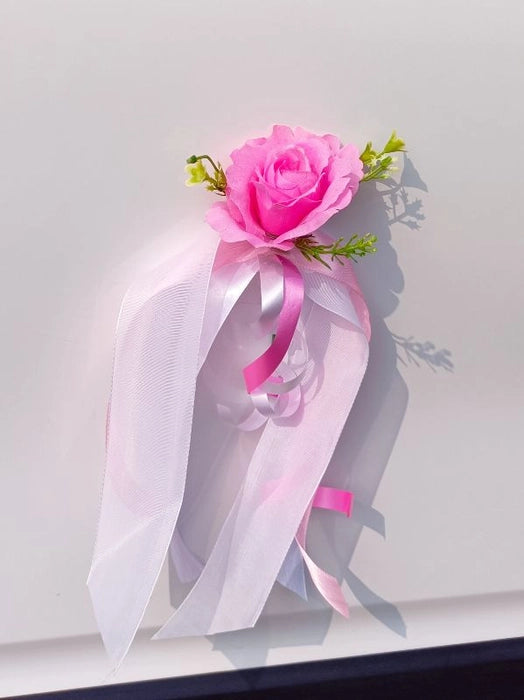 - 5 Single Pink Flowers with Ribbions and decorative leaves ( 1 for front and 4 for Doors).