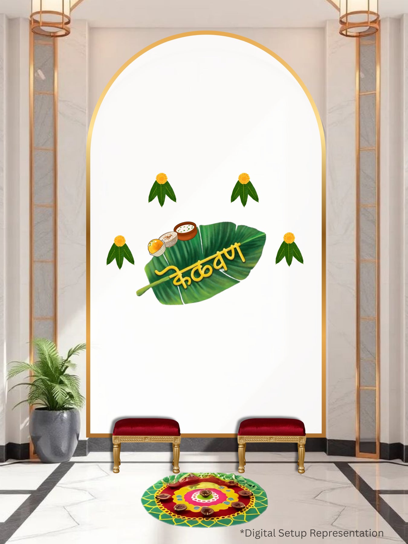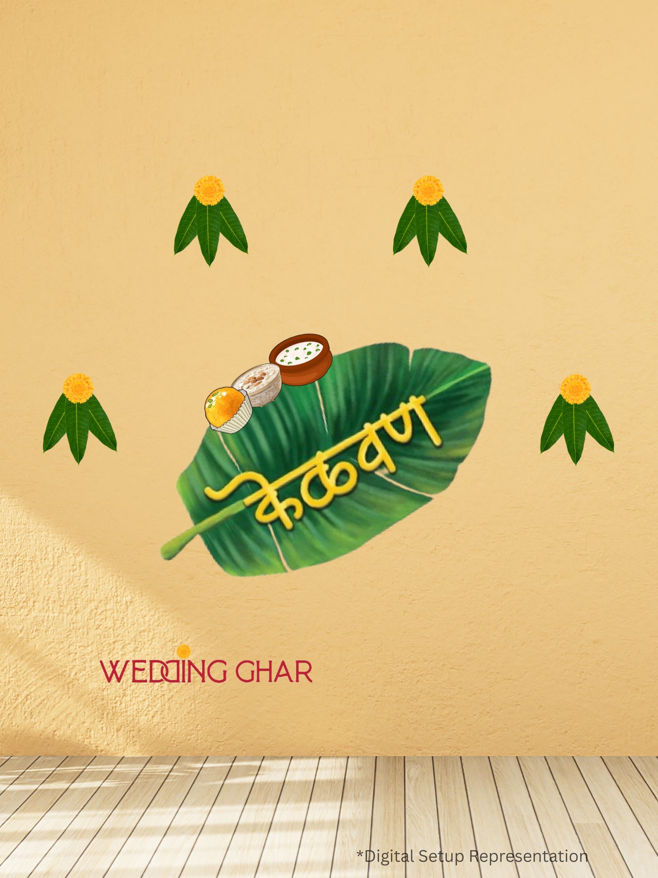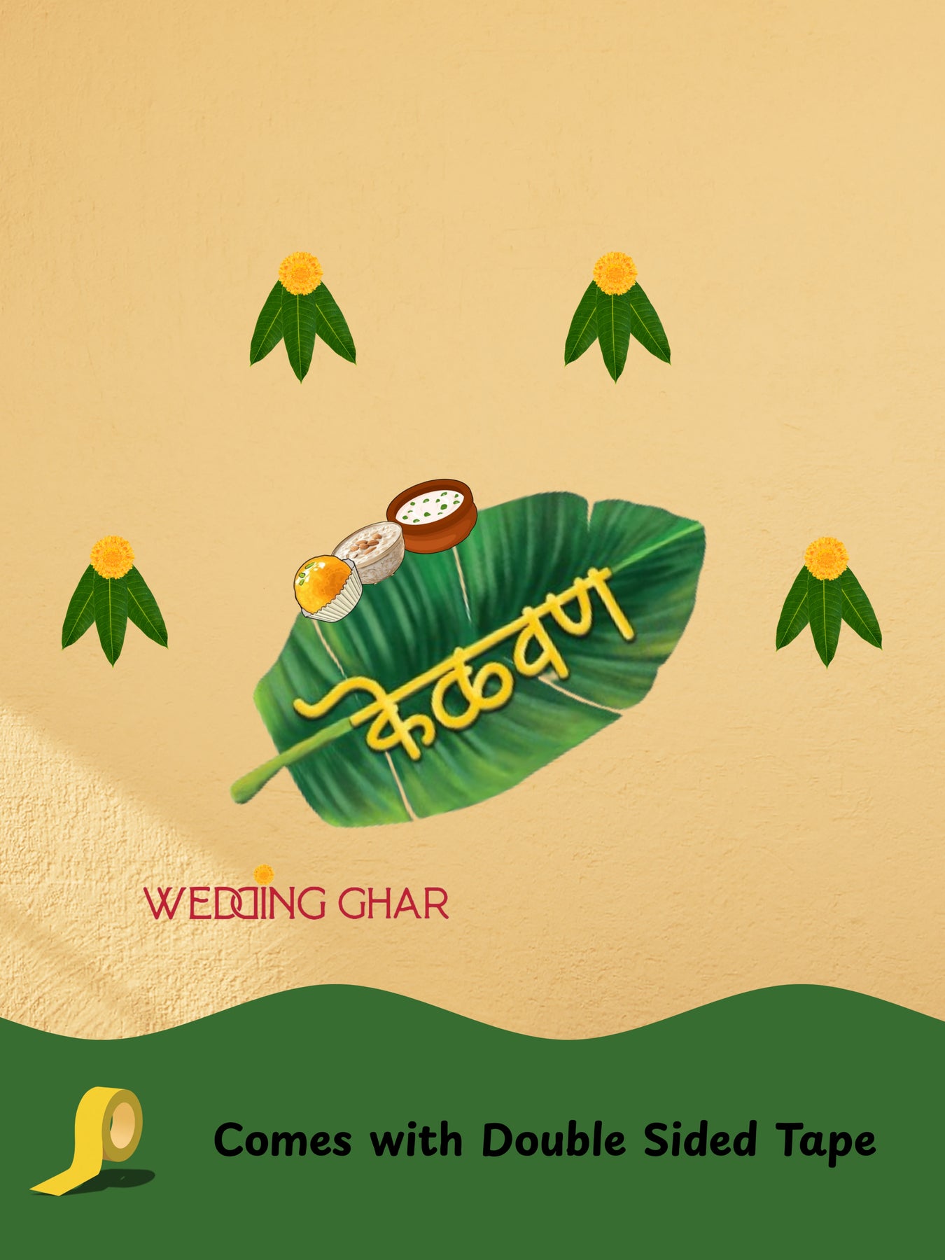 A fresh, and traditional design inspired by traditional Maharashtrian décor. This Marigold Leaf Kelvan Decor Kit beautifully blends natural elements with cultural look.