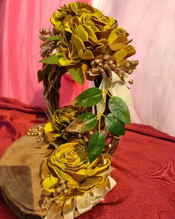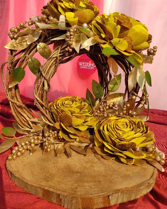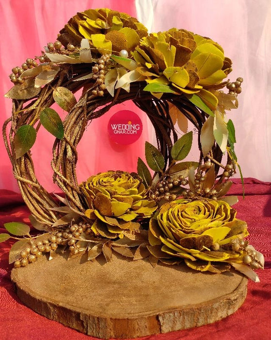 Wooden Engagement Ring Plate ( Wooden Base + Two Wooden Rings + Wooden Flowers)