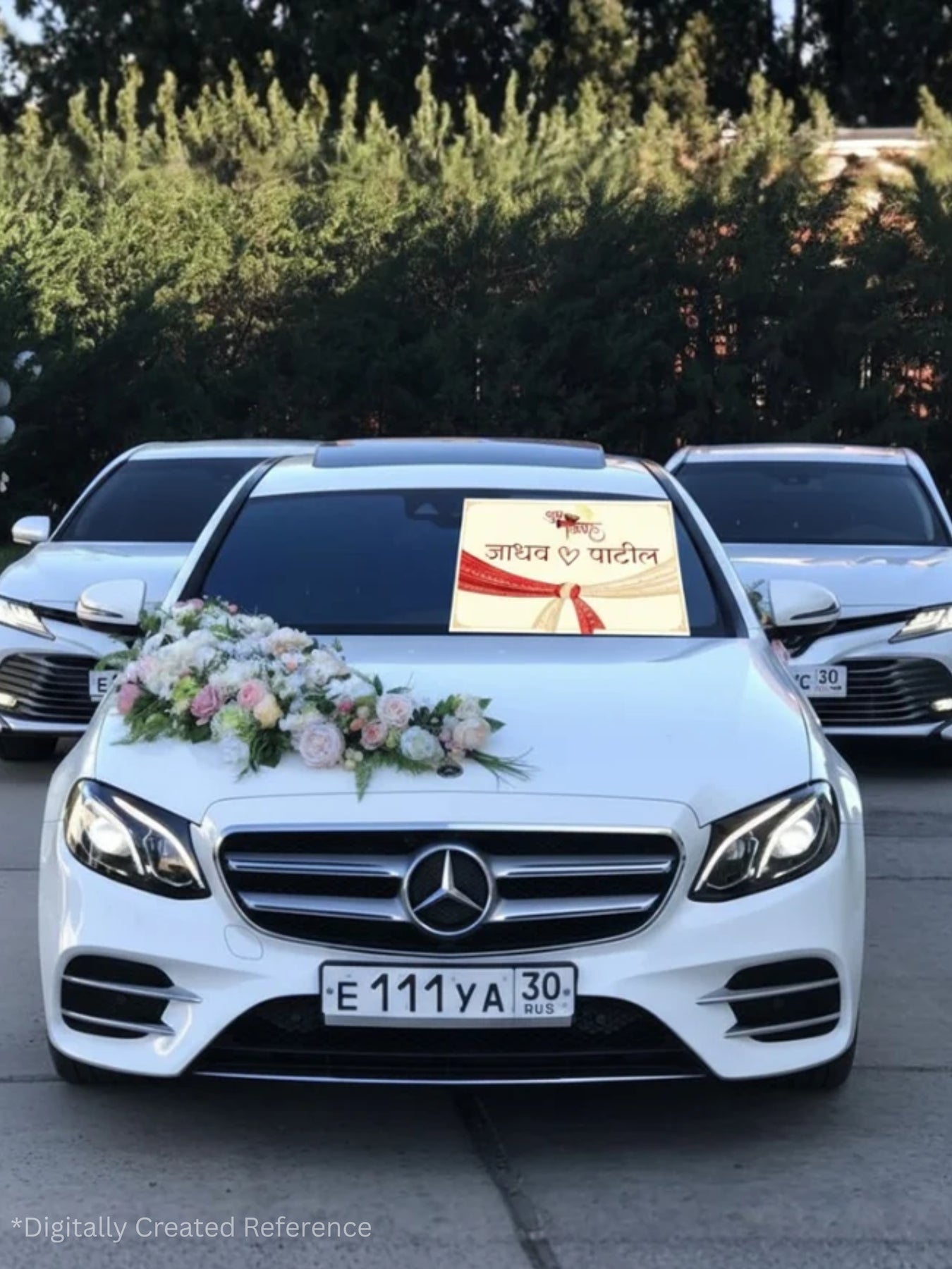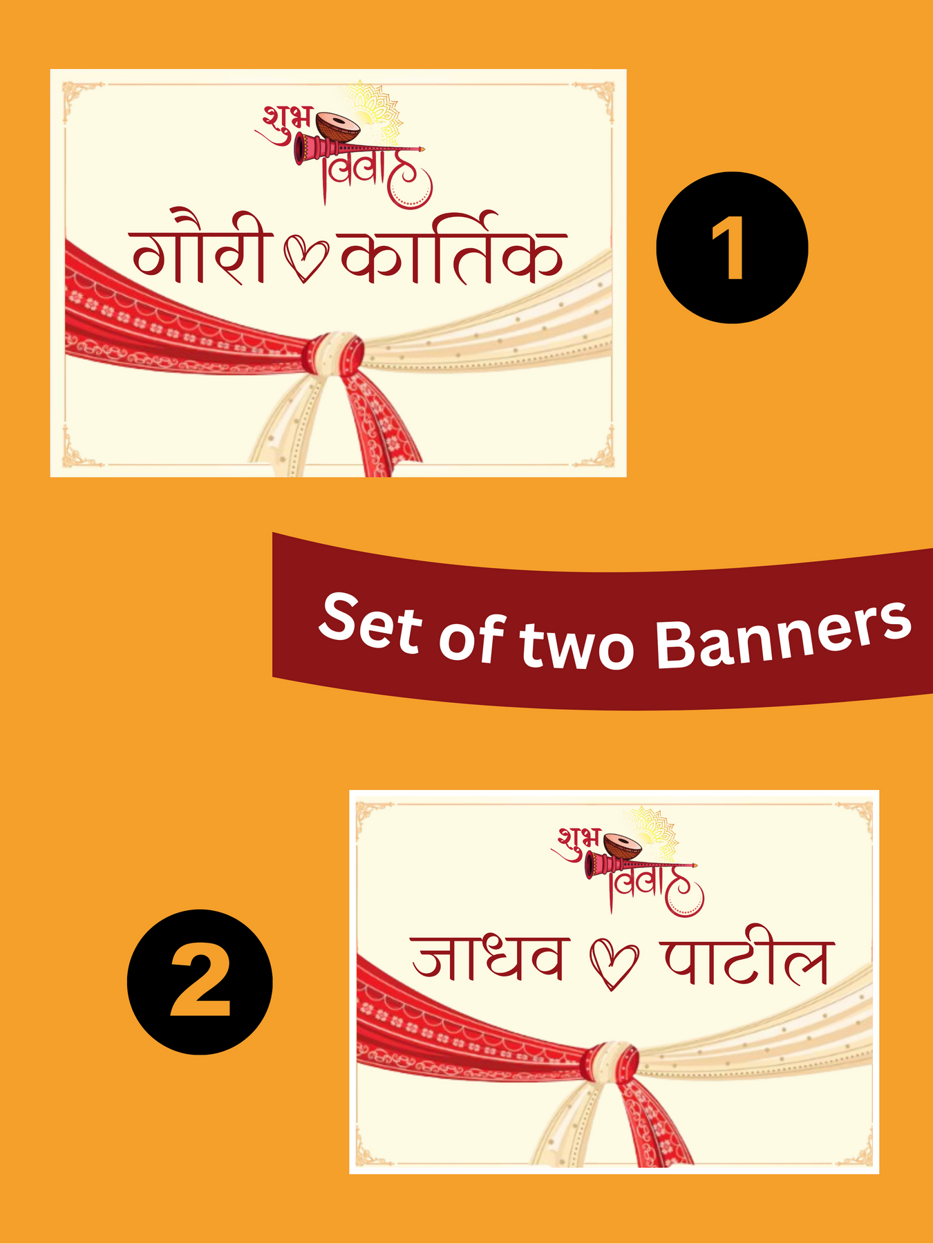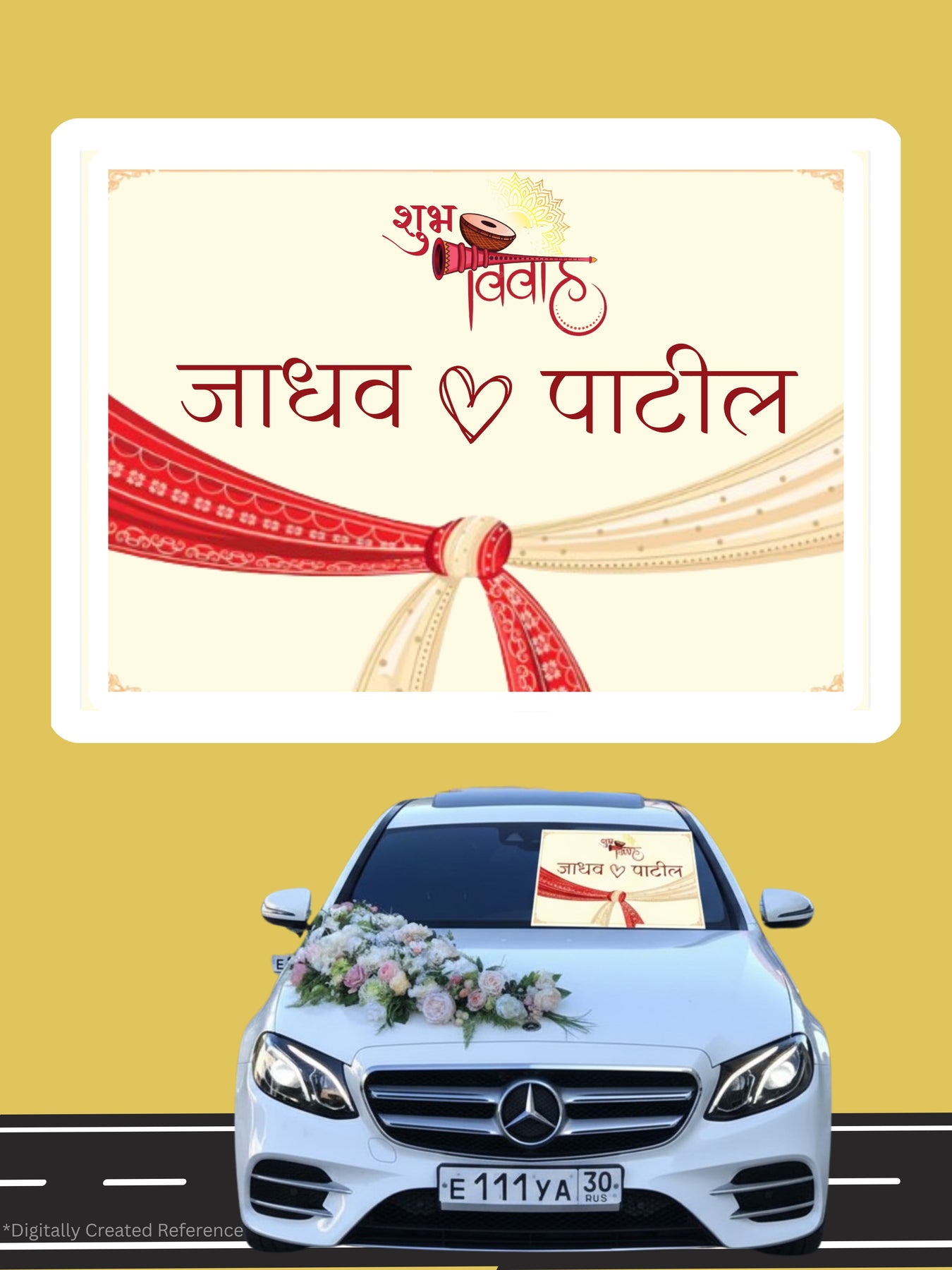 A simple and beautiful banner specially designed for Maharashtrian weddings. The Marathi text adds a personal, cultural touch and looks great on any wedding car.