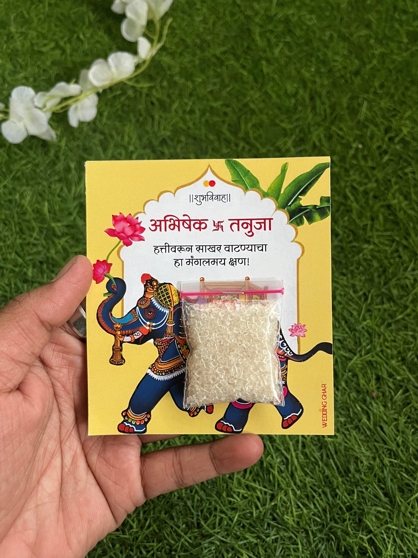 Pooja Kulkarni Traditional feel आहे. हत्तीवरून साखर वाटण्याची कल्पना खूपच छान आहे 💛